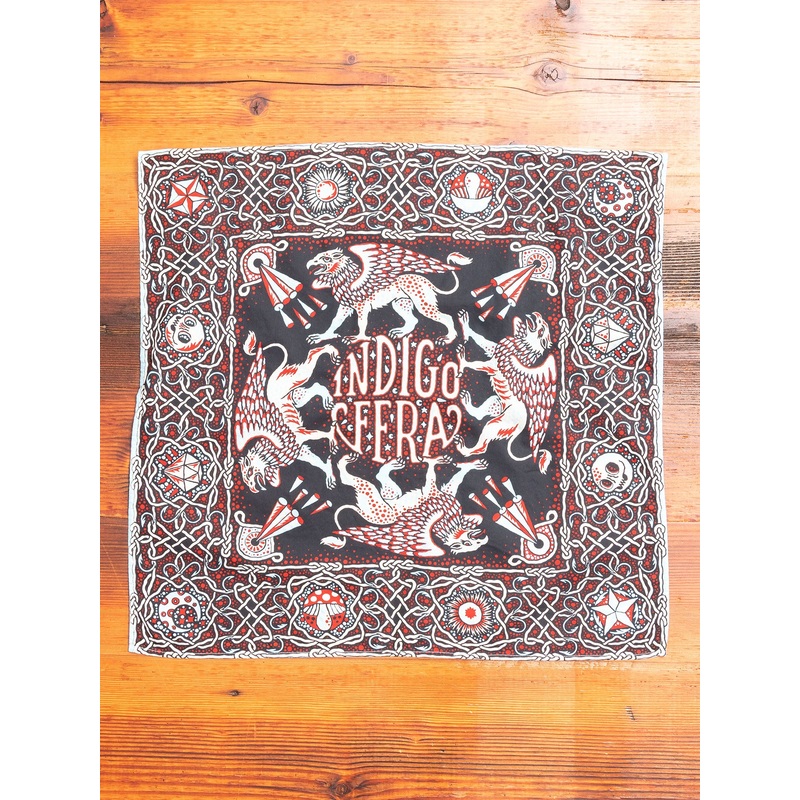 • This bandana from Indigoferaiscrafted from a smoothcotton-poplin fabric that features an illustration of Inidigofera’sGryphon in a vibrant design. The Gryphon is a reoccurring symbol in many of Inidigofera’s motifs, rooted in Scandanavian or Nordic folklore thegriffin represents strength and courage.