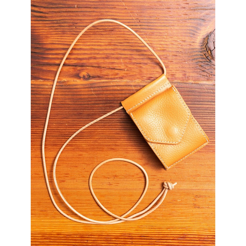 • The Hang Wallet from Hender Scheme is a convenient travel pouch crafted using specially treated leather from the brand’s vast archives.Fitted with an adjustable leather-cord neckstrap, the hang wallet is accompaniedwith a snap-button pocket and card-slot designed to hold any assortment of ID, card, or hotel-keys. Expertly burnished and stamped with the brands foil-embossing.