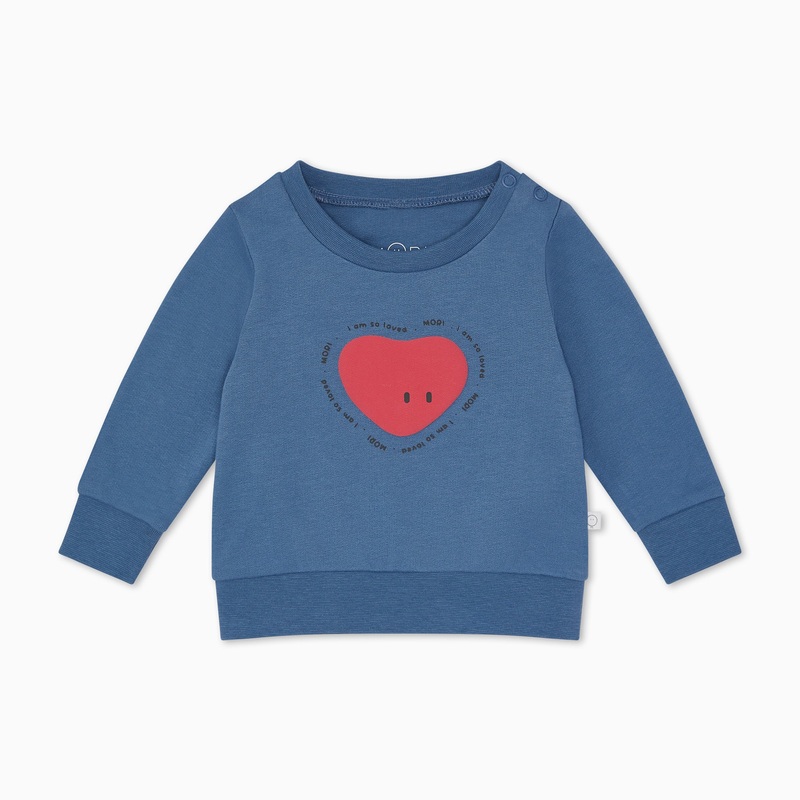 Our organic cotton sweater is decorated with a MORI heart surrounded by an ‘I am so loved’ slogan, so you can show your little one (and the world) how you really feel.