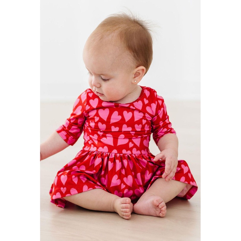 Our twirl bodysuit is the newest addition to our twirl line. Perfect for babies! Snap closure for diaper changes AND no need for bloomers. Matching Twirl Dress available for big sis, cousin or BFF.
