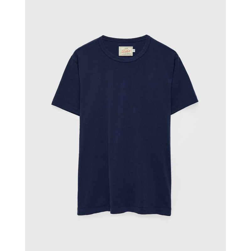 • Knit, cut, and sewn in the USA, the Dehen Heavy Duty Tee is crafted from a 5.6oz medium-weight cotton jersey with a durable weave and soft hand feel. Staying true to the brands roots in traditional Americana, the tee features a classic, no-frills design. Cut in a regular fit, the shirt is garment-dyed for a deep, rich color that will evolve beautifully over time.