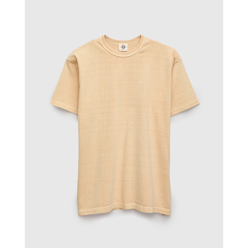 Translated to “Splash”, the Shibuki dye features the same Tamba chestnut dye found in the Kuri variant, with a lighter exposure resulting in a khaki-beige color. Dyed using Kuri Tamba, a dye derived from Tamba Chestnut skins. The chestnuts used to dye this fabric are grown in the same area as the cotton for this series.Crafted in Wakayama, Japan, the shirt is knit on circular machines and sewn with natural cotton thread. Woven using natural slubby cotton, the shirt is finished on a 1960’s vintage Union Special for an authentic vintage feel.