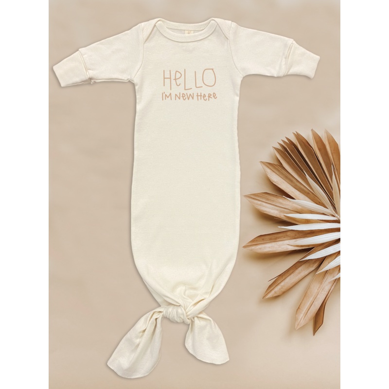 Hello Im New Here – Organic Infant Gown – Clay