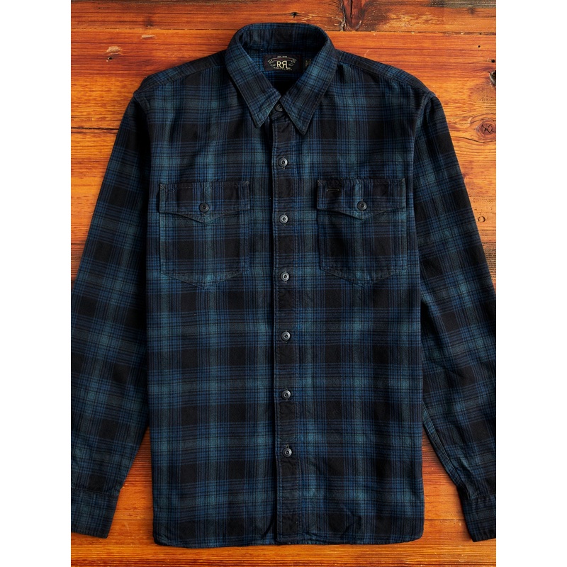 • This classic shirt from RRL is built using a medium-weight cotton canvas fabric with a beautiful varied color that will fade with wear. The shirt sports a subtle yarn-dyed plaid pattern underneath a black resin over-dye that was dipped by hand. Inspired by vintage workwear, RRL utilizes decades of fashion industry experience to carefully replicate the look and feel of a well-wornwork shirt. Equipped with two pockets at the chest, custom catseye buttons, and authentic chain-stitched construction at the side seams.