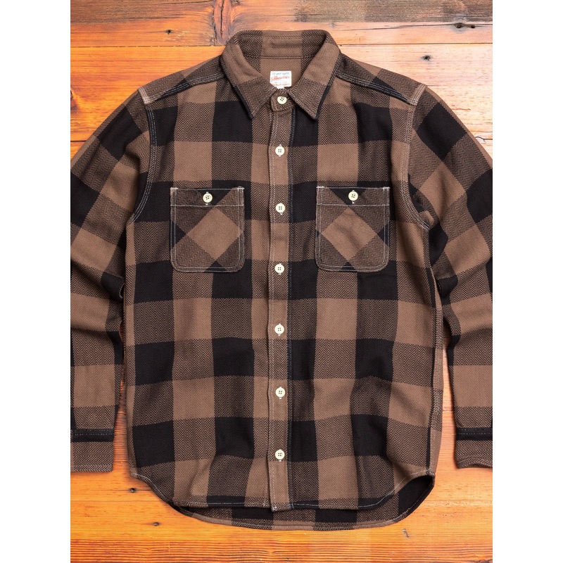 DetailsSizingBrand InfoInspired by vintage workwear, this hard-working shirt from Momotaro is crafted using a heavyweight brushed flannel fabric from Japan. The fabric employs a herringbone weave that rotates between contrasting and tonal blocks to create