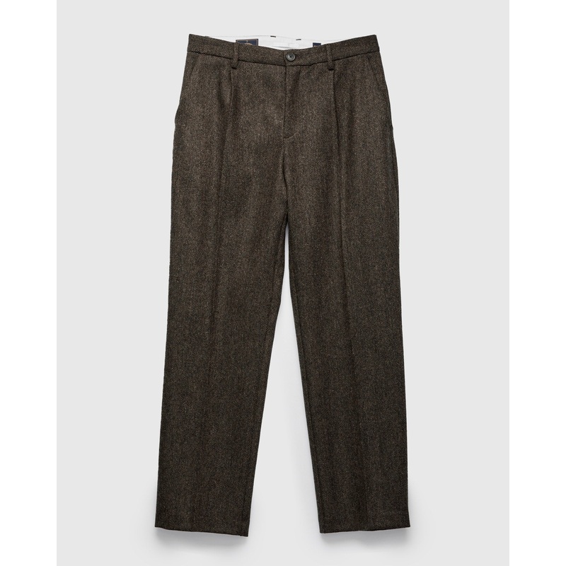 Be the first to review “Herringbone Single Pleat Trousers in Brown”