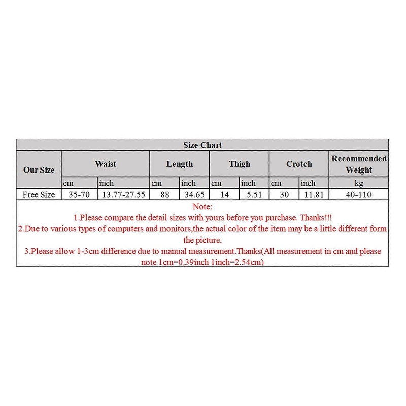 Size:One Size Waist:35cm-70cm(13.77inch-27.55inch) Length:94cm(37.01inch) Thigh:14cm(5.51inch) Crotch:30cm(11.81inch) Recommended Weight:40kg-110kg