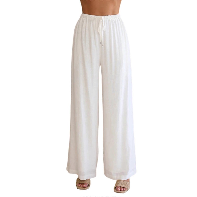 High Waist Loose Fit Trousers Pants Elastic Waist Solid Color Breathable Cloth for Daily Office School Wearing White XL | Fruugo SG
