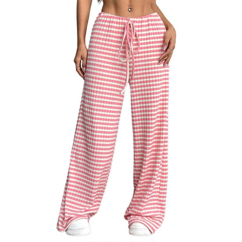 High Waist Striped Cotton Pants for Women Youthful Trendy Outfits Loose Trousers with Stretchable Drawstring Waistband Pink M | Fruugo SG