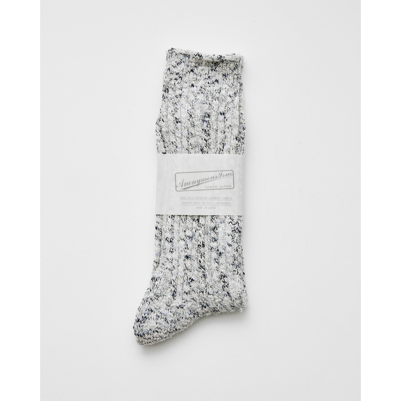 • The Homespun Yarn socks from AnonymousIsm are soft full-length made from multi-colored melange yarn which uses a special weaving technique that gives a unique hand-spun texture. The socks are use the brand’s signature slub weave, which adds texture and pliability. Each pair of AnonymousIsm socks are expertly crafted by their team in Tokyo, Japan.