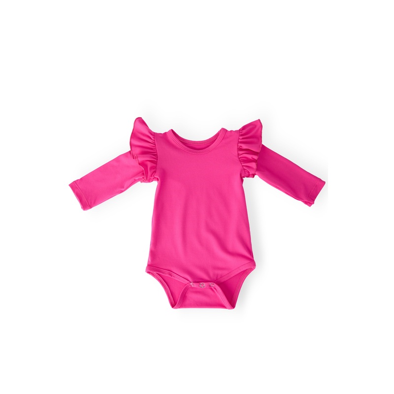 Hot Pink L/S Flutter Bodysuit|0-3M|3-6M|6-12M|12-18M|18-24M