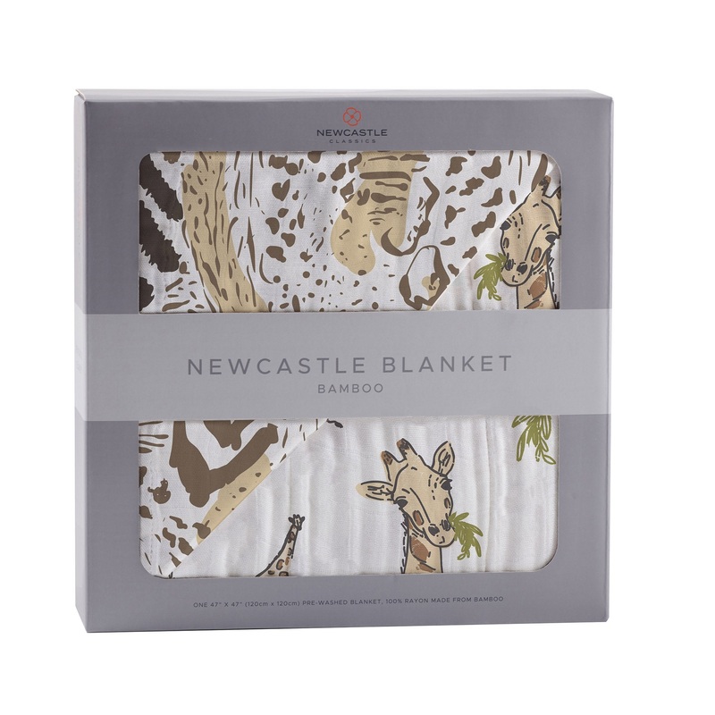 Hungry Giraffe and Animal Print Bamboo Muslin Newcastle Blanket