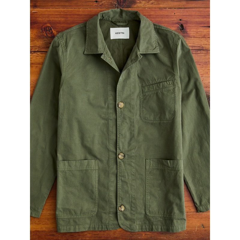 • Receiving design cues from classic chore coats, theHuntly Jacket from Kestin is made from a medium-weight brushed cotton twill fabric. Cut in a regularfit, the jacket features the signature chore coat design and goes under a garment dye process for a deep color that will fade overtime. Finished with apointed collar, straight hem, and resin button placket.
