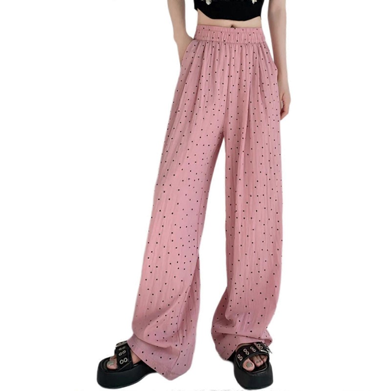 Ice Silk Lightweight Wide Leg Pant for Women Elastic High Waist Dot Print Pleated Lounge Straight Trousers with Pockets XL Pink | Fruugo SG