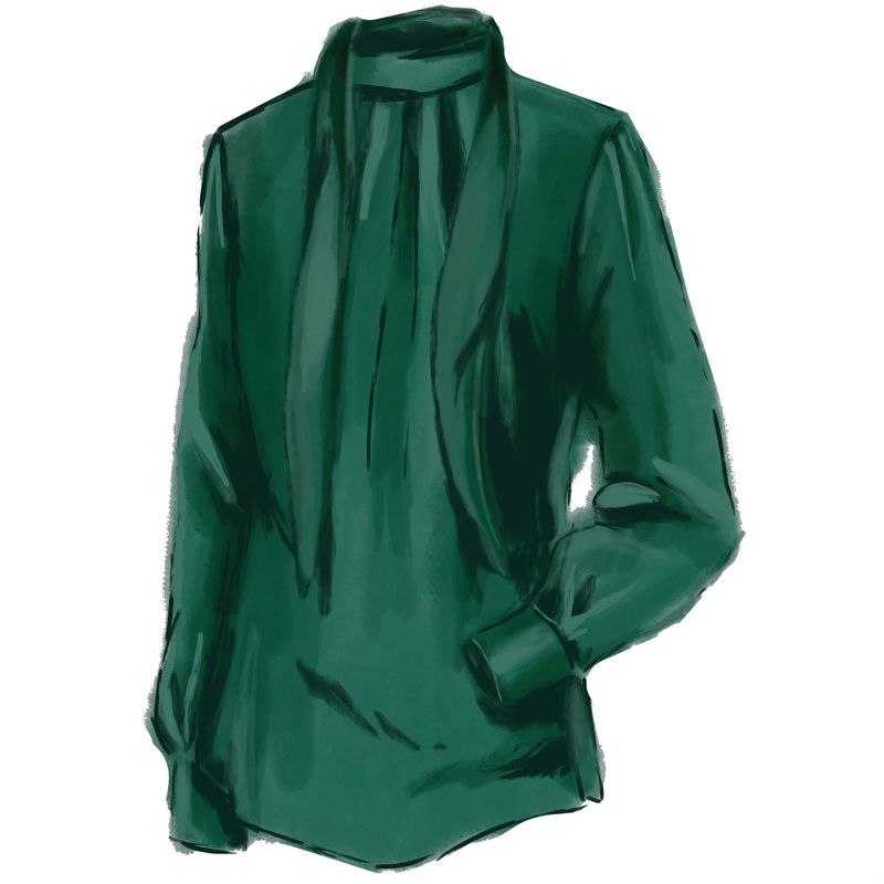 Ingenue Blouse (No. 6201). Get discovered. Statement-making with the neck ties that hang down the front (faux lapel-like). Crafted of luxe silk crepe de chine. Three pleats down the center front. Flattering bust darts. Adjustable sleeve cuff. Real shell buttons. Fully lined. Imported.