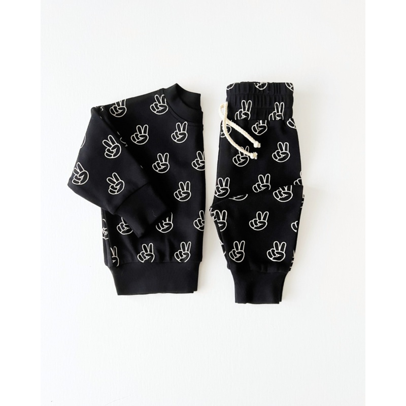 Good Vibes all around! This two-piece set is made of oh-so-soft cotton, perfect for daily lounging during the upcoming Spring months! Stylish enough for a day out, cozy and comfortable for play. Gender neutral and up to 9Y, this sweet and simple design wil