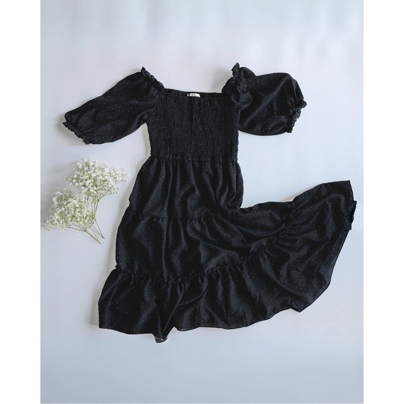 Turn heads with our Katherine mommy and me dresses in Black with dainty White Dots. Crafted to deliver elegance with a lively twist, whether you're stepping out for a stylish brunch or enjoying a leisurely stroll, this ensemble is sure to accentuate the be