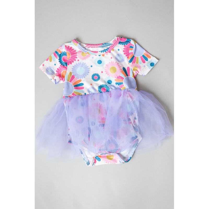 Our Tutu Bodysuit is the perfect way to add a little bit of fancy, but still keep your baby comfortable. Tulle skirt is super soft and won't be scratchy on baby's skin. Snap closure for diaper changes. Matching twirl dress is available for big sis, cousin,