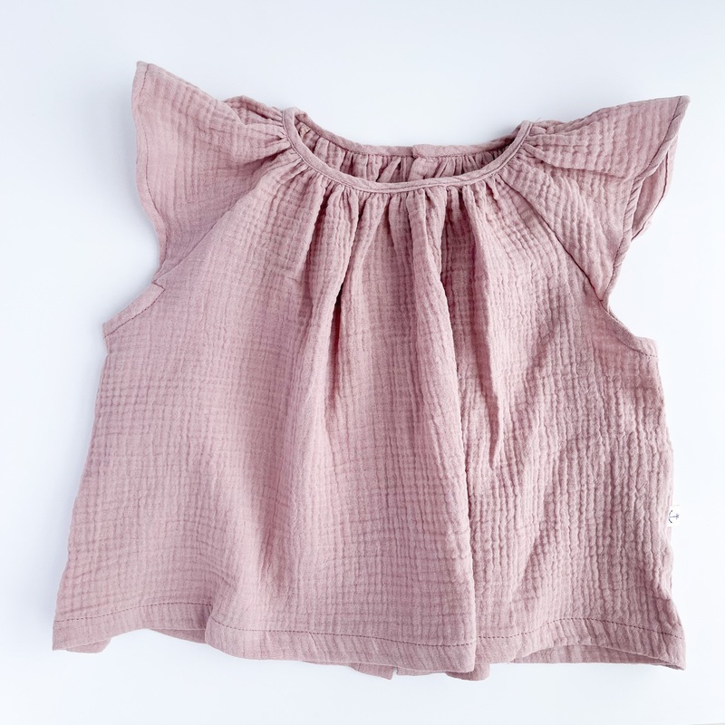 Part of our ORGANIC COLLECTION, this sweet and feminine flutter sleeve top will be a summer favorite. The fabric gets softer with every wear and wash. The wooden buttons add charming detail. We pair with matching bloomers or shorts. Colors Blush, White 100% Organic Cotton Available in sizes 0-3 month- 6/7 years Machine Wash / Hang to Dry Item runs true to size