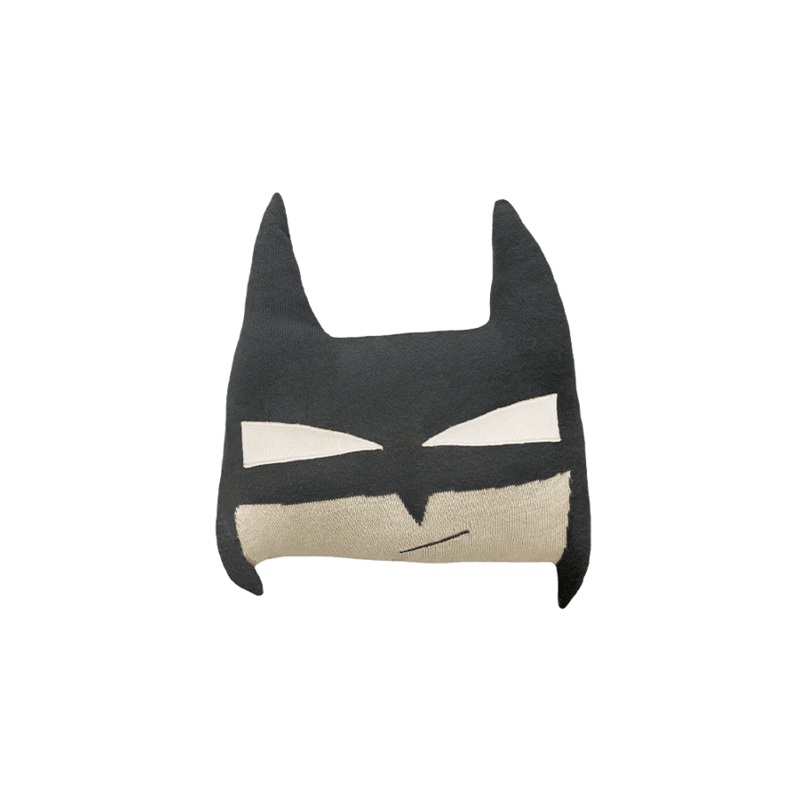 Embrace the call to protect our planet! Introducing Batboy, a symbol of inspiration and mystery, adorned with a striking black mask. Unleash your inner superhero with this washable cotton knit throw pillow, ideal for creating imaginative and artsy superher
