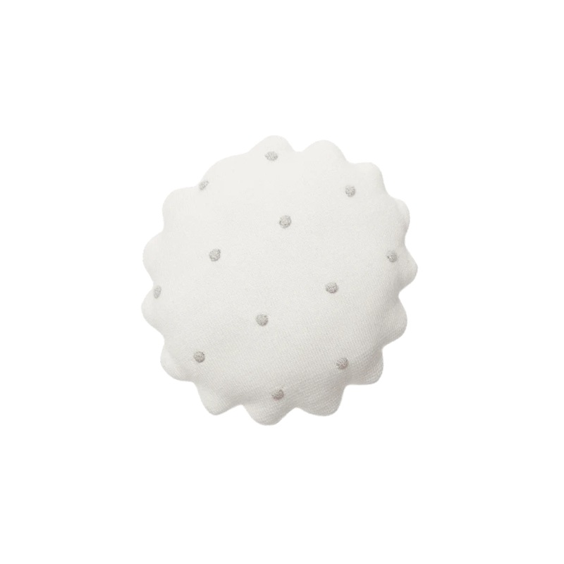 Indulge in the sweetness of our Knitted Biscuit Throw Pillow, inspired by a tea biscuit and hand-knitted with care using soft cotton. Perfect for adding a touch of whimsy to the nursery, this adorable accessory can be placed in the crib or on the playmat. Rest assured, it is Oeko-tex certified, ensuring its safety and quality