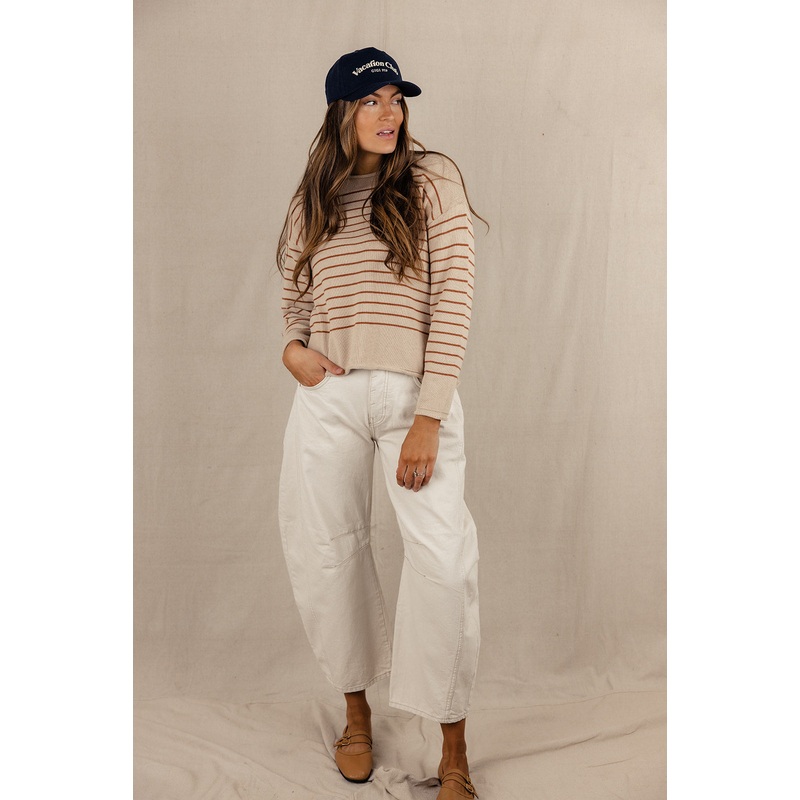 This cozy sweater features rolled hems, a round neckline, and side slits on either side. It's the perfect oatmeal shade and will go with anything currently in your closet. The Ladder to the Stars Sweater is one you'll have around for years to come!// paire