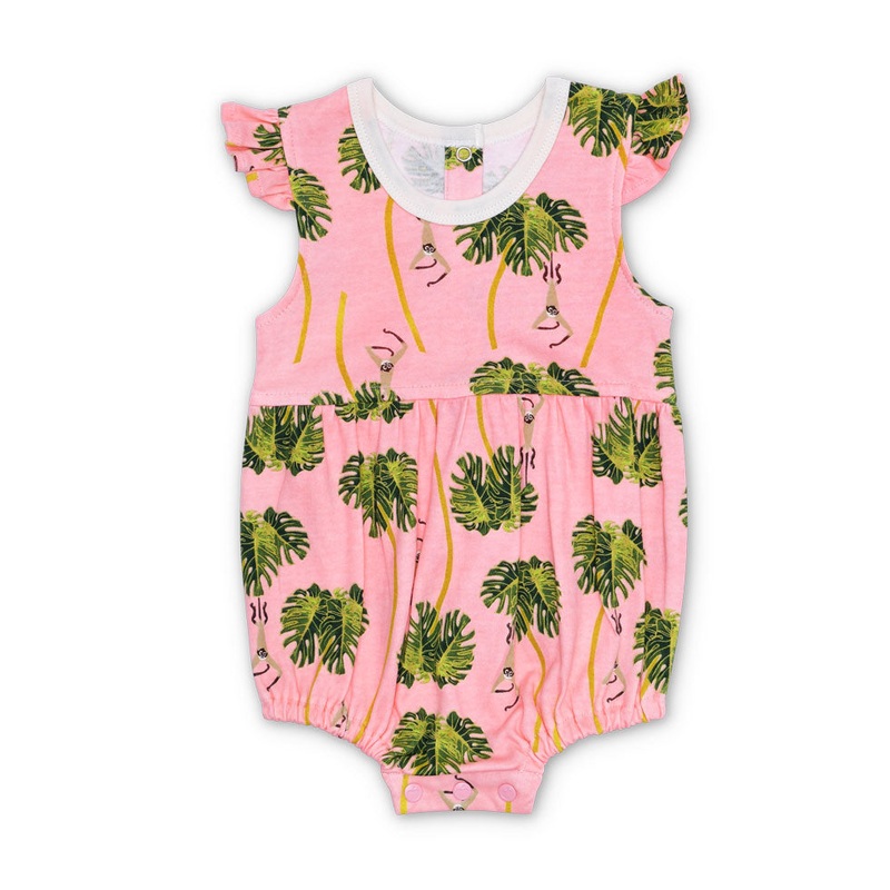 Lala Curio Flutter Sleeve Romper – Dancing Palms Pink