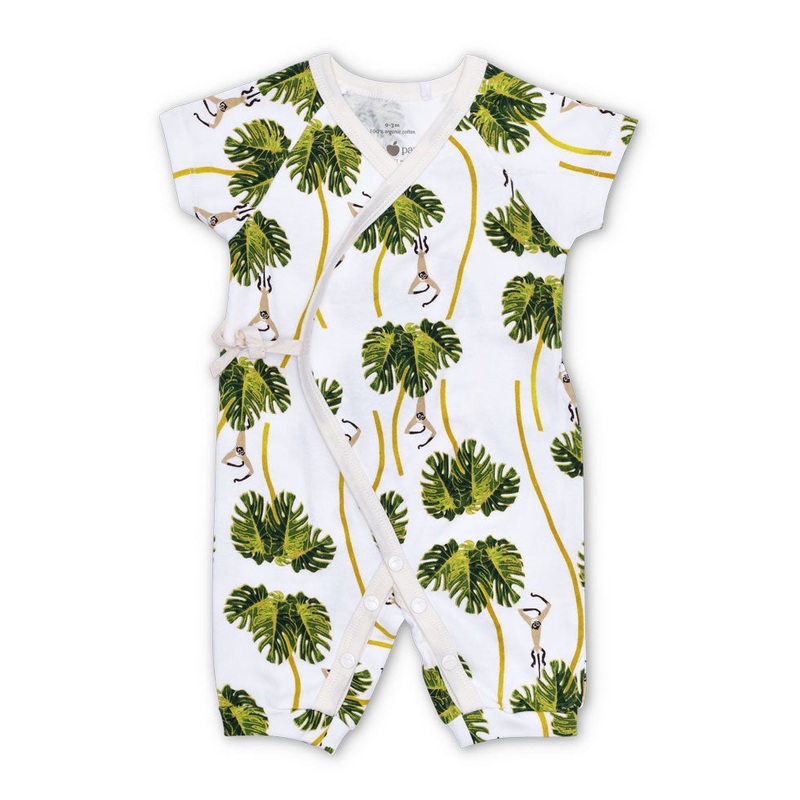 Made with GOTS-certified organic cotton OEKO-TEX 100 eco-friendly fabric dyes Mid-arm sleeves Side tie Machine wash, tumble dry Snap closures
