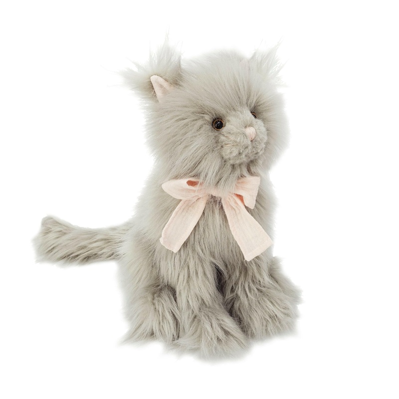 Oh la Latte! This gorgeous kitty has long luxurious fur and sweet muslin bow around her neck. Perfect for any kitty lover!measures 12 inches / 30 cm100% Polyester for enhanced softness and durabilityPerfect for playing, snuggling and gift givingSpot clean