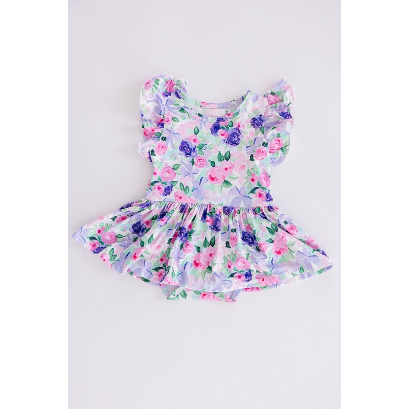 Our twirl bodysuit is the newest addition to our twirl line. Perfect for babies! Snap closure for diaper changes AND no need for bloomers.Mix and Match our Lavender Loveprint collection for sisters, cousins, or BFFsINSTRUCTIONS: Wear-Play-RepeatFIT & FABRI