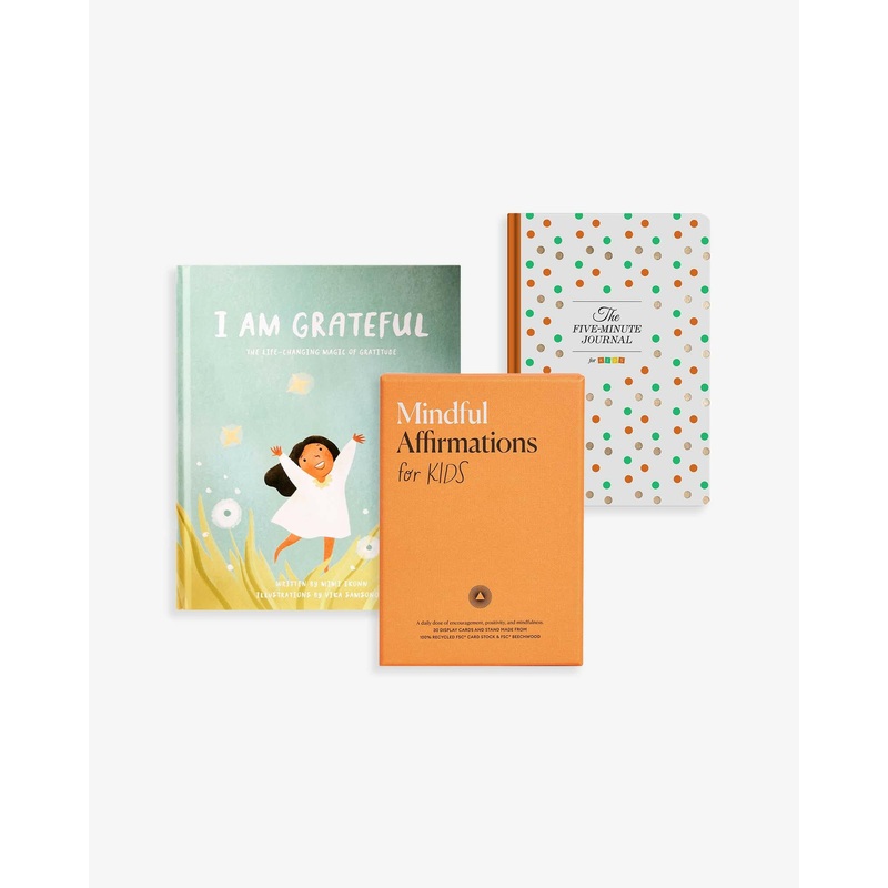 Focus young minds on the good things in their lives, fostering gratitude and a growth mindset with the Learning and Growing bundle, featuring The Five Minute Journal for Kids, Mindful Affirmations for Kids, and I Am Grateful book.