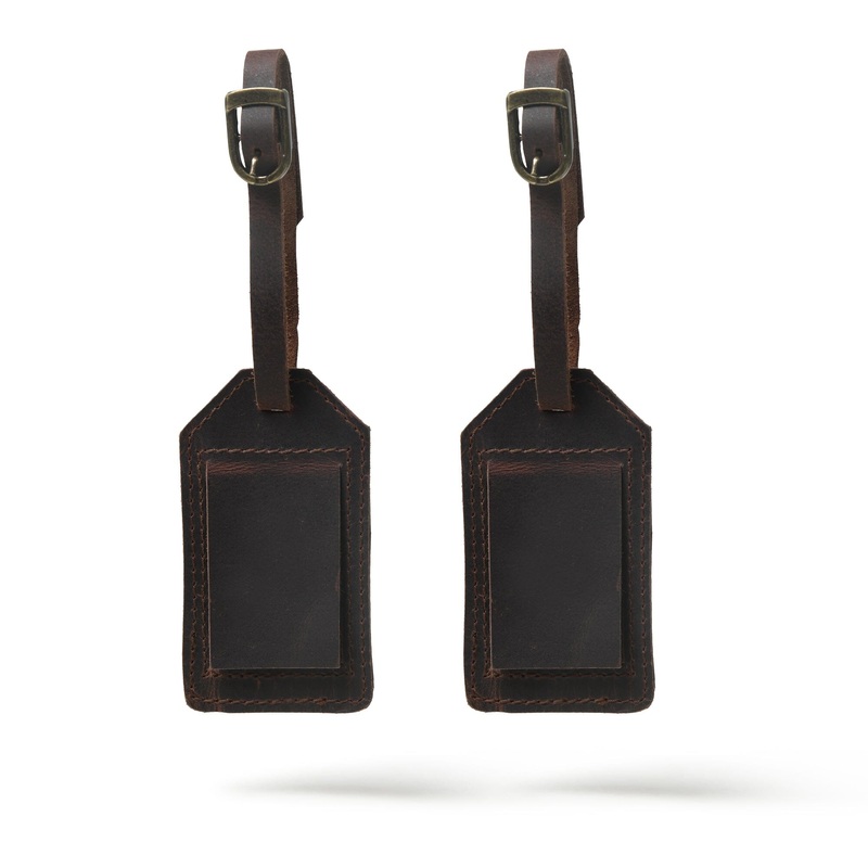 A clever idea to keep your luggage secure from being lost or misplaced. These tags have a transparent window slot covered with a leather shield flap where you can put your personal information or your ID card so that whoever finds your lost bag can contact
