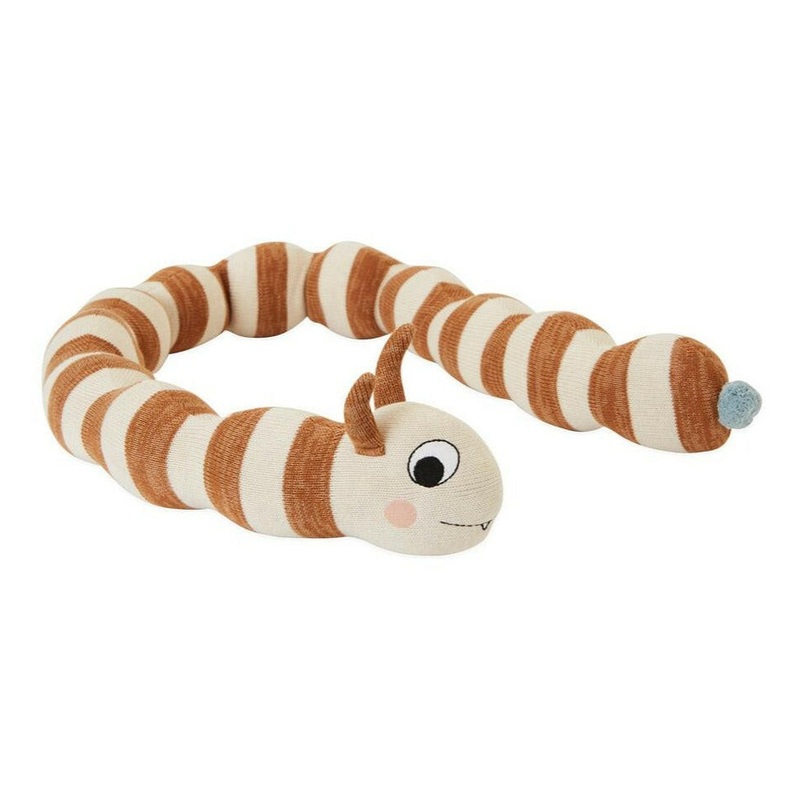 With its striped pattern and playful look, the Leo Larva Figure is the perfect accessory to every childs room.The Leo Larva Figure is made of 100% cotton, knit, and has a soft fibre filling which makes it very comfortable to cuddle.For cleaning it is recom