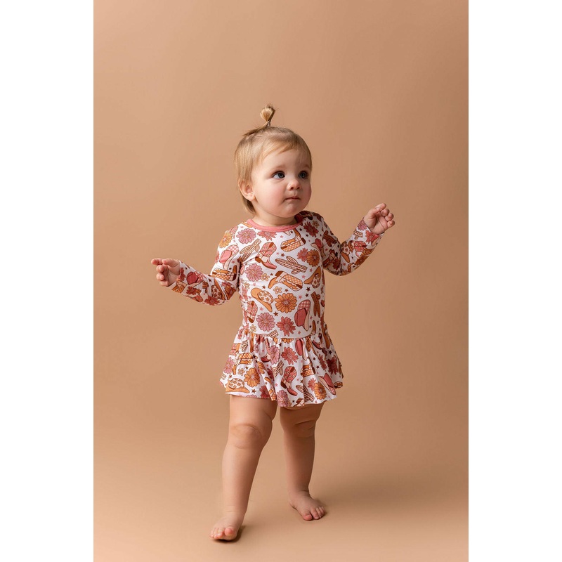 Extremely soft and stretchy95% viscose from bamboo; 5% spandexMachine wash cold and tumble dry lowNo interior tagsNot treated with flame retardantsTwirl BodysuitSnaps on the shoulder for easy changingSnaps on the bottom for easy changing