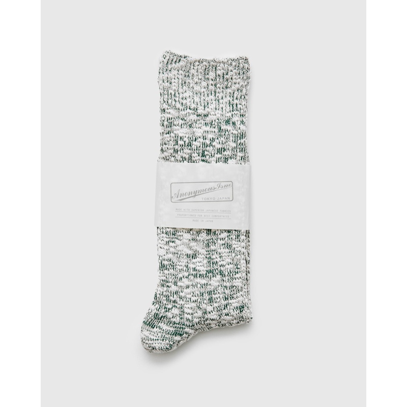 • The “Light Slub Crew” series from AnonymousIsm signature slub socks with a minimalist textured design. Woven using a slub weave yarn, the socks sport a tubular construction with ribbed knitting. Each pair of AnonymousIsm socks are expertly crafted by their team in Tokyo, Japan.