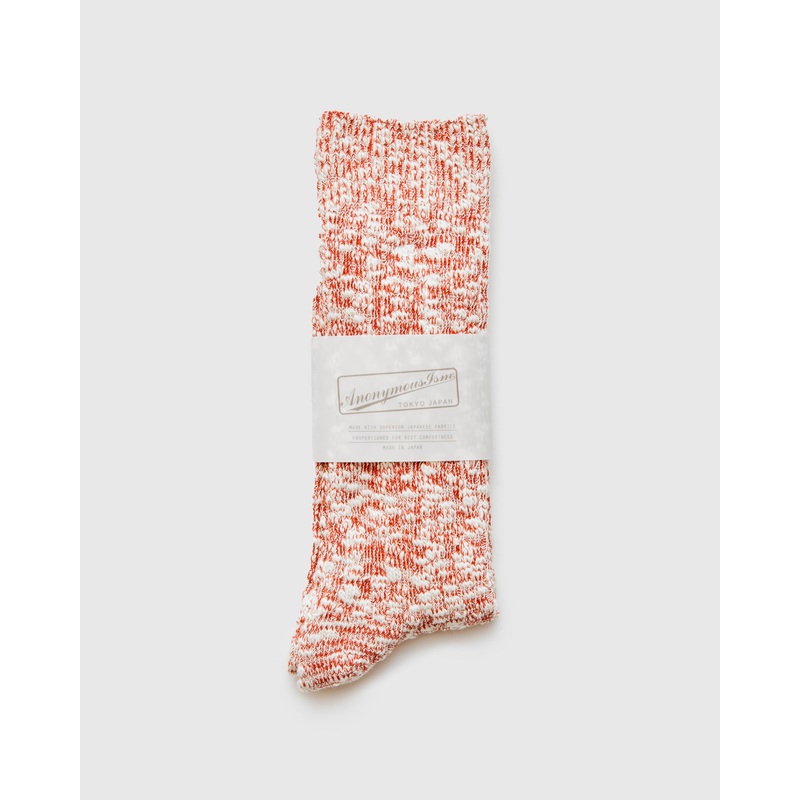 • The “Light Slub Crew” series from AnonymousIsm signature slub socks with a minimalist textured design. Woven using a slub weave yarn, the socks sport a tubular construction with ribbed knitting. Each pair of AnonymousIsm socks are expertly crafted by their team in Tokyo, Japan.