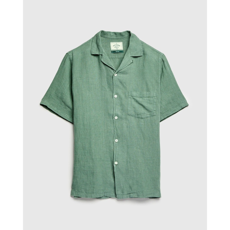 Be the first to review “Linen Camp Collar Shirt in Dry Green”