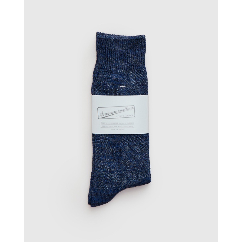 • The Linen Sashiko Crew socks from AnonymousIsm are soft full-length made from a unique blended yarn, woven with a special jacquard knit to emulate sashiko pattern garments. The dry texture of linen makes for a lightweight, breathable sock. Each pair of AnonymousIsm socks are expertly crafted by their team in Tokyo, Japan.