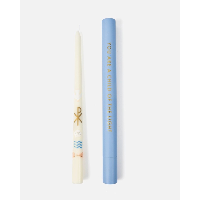 Each tapered Baptism candle comes beautifully packaged in a keepsake storage tube, thoughtfully designed to protect the candle. You are a child of the light is written in elegant gold foil.
