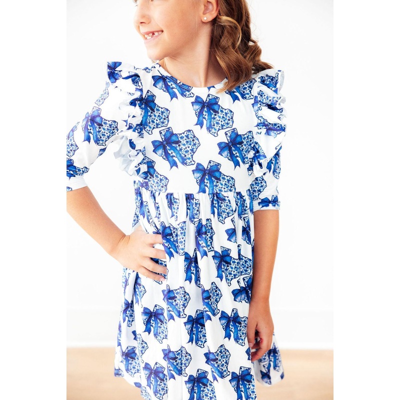 Our customer-favorite Ruffle Twirl Dress is the perfect mix of comfort, style, and twirl-worthy fun. Featuring a full-circle skirt, soft stretch fabric, and a sweet scoop back neckline, its made for everything from school days to special occasions.