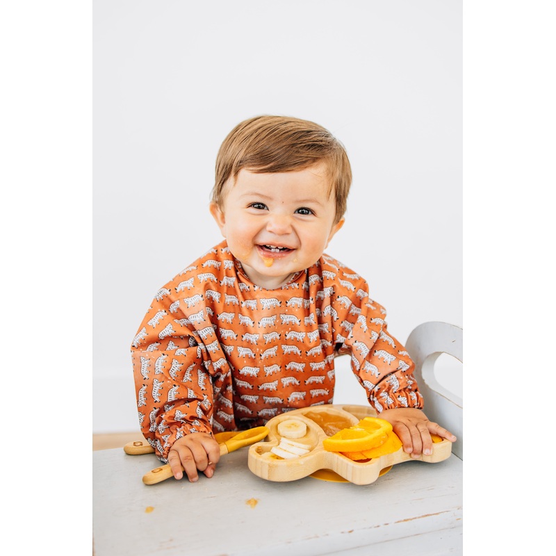Introducing the ultimate eco-friendly baby bib - the Wildwoven long sleeve recycled plastic bib is not only made from durable, easy to clean materials, but it's also a smock! Keep your little one clean and protected during mealtime with this sustainable bi
