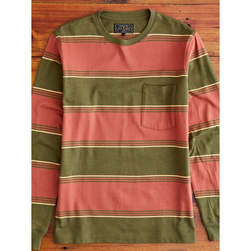 DetailsSizingBrand InfoCrafted from a medium-weight slub cotton stripe fabric, the BEAMS PLUS Long Sleeve Pocket Tee showcases an intricate jacquard weave stripe design. The shirt is adorned with a ribbed crewneck and features a convenient patch pocket at