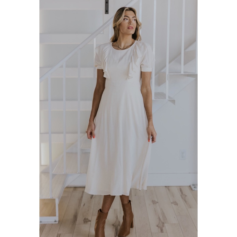 Moms have the toughest job and ROOLEE is here to make it a little bit easier for you. Our MOM dresses are designed for mothers, by mothers.This dress features aback zipper to make getting ready in the morning quick + easy and two hidden front zippers for nursing. A fun+ flirty ruffle accent and a flowy skirt to add movement, and our favorite detail: pockets (because you deserve the best).