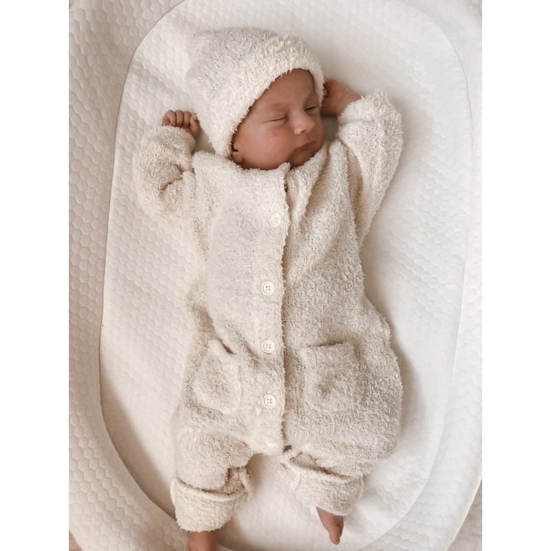 This Cozy Teddy Beanie will keep your baby’s head warm all year long! With its plush, fuzzy knit this hat provides your baby with luscious comfort. In a soft cream-color this beanie pairs well with any garment! Put the finishing touches on an outfit with snuggly softness of the Cozy Teddy Beanie.