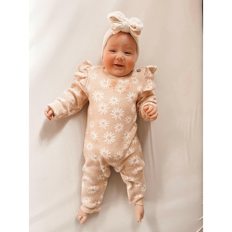 Crafted with exquisite detail,our Floral JacquardJumpsuit features a captivating floral jacquard print that adds an air of elegance to your baby girl's attire. Let her be the center of attention with this enchanting ensemble.The jumpsuit's adorable shoulde