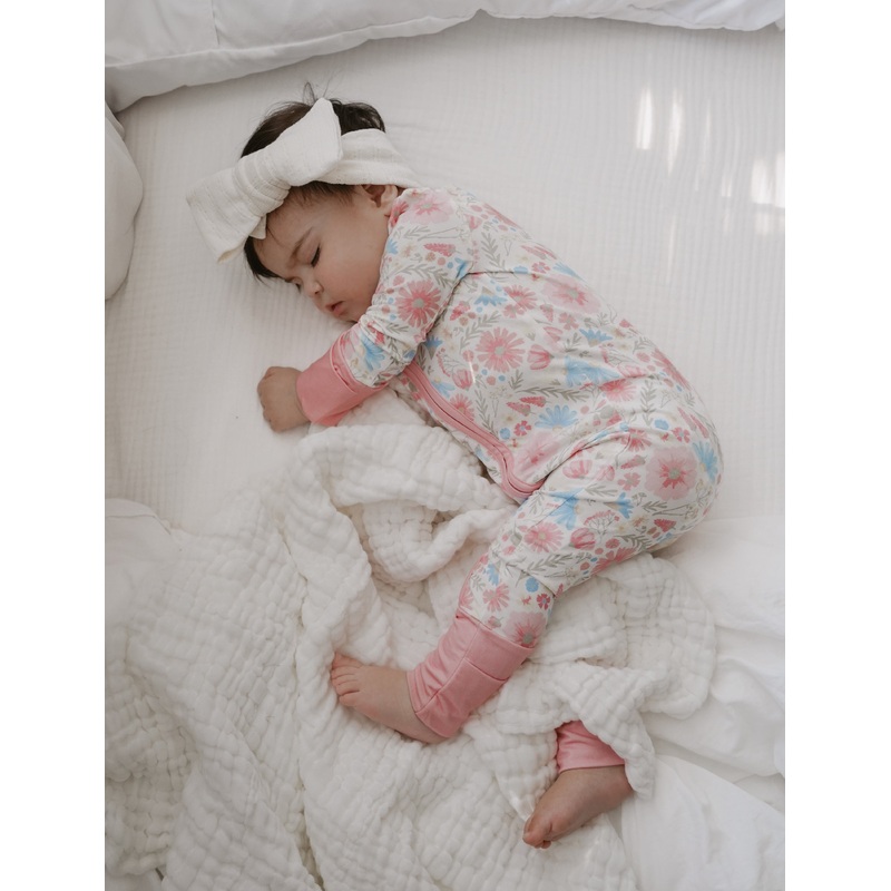 Dress your free-spirited little one in the wild blooms of spring wildflowers. This ultra-soft bamboo jumpsuit captures spring in full bloom with it’s pastel meadow inspired print of blooming blossoms, budding flowers, and fresh greenery. Perfect for your little buttercup!