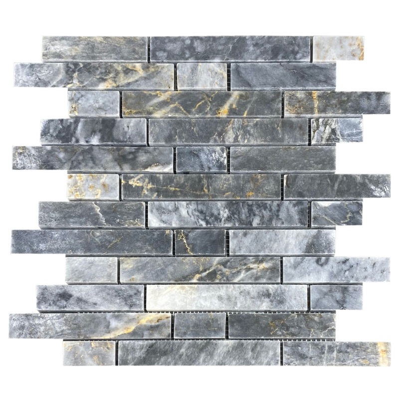 Luna Sky Marble Strip Liner on 12″ x 12″ Mesh Mosaic Tile has small depressions and crevices within each stone to project a modern and natural look. Great product for your kitchens and bathrooms. Predominantly blue and gray, these 12 in. x 12 in. mesh-mounted tiles exhibit random tone variations and coordinate with nearly any commercial or residential decor theme. It comes in 12″x12″ Mesh.
