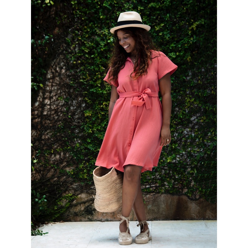 Magali dress has a flattering cut. It’s a loose dress that is belted at the waist, for a pretty, slightly retro silhouette. Easy to wear both at the office and for happy hour at a Parisian terrace. Magali can also be worn at the beginning of your pregnancy. Crafted in organic cotton gauze in a bright Cherry color, it’s the perfect dress of the season! Match your mini with Lara dress in Cherry from the Girls’ collection, or match your baby girl with Morgan jumpsuit.