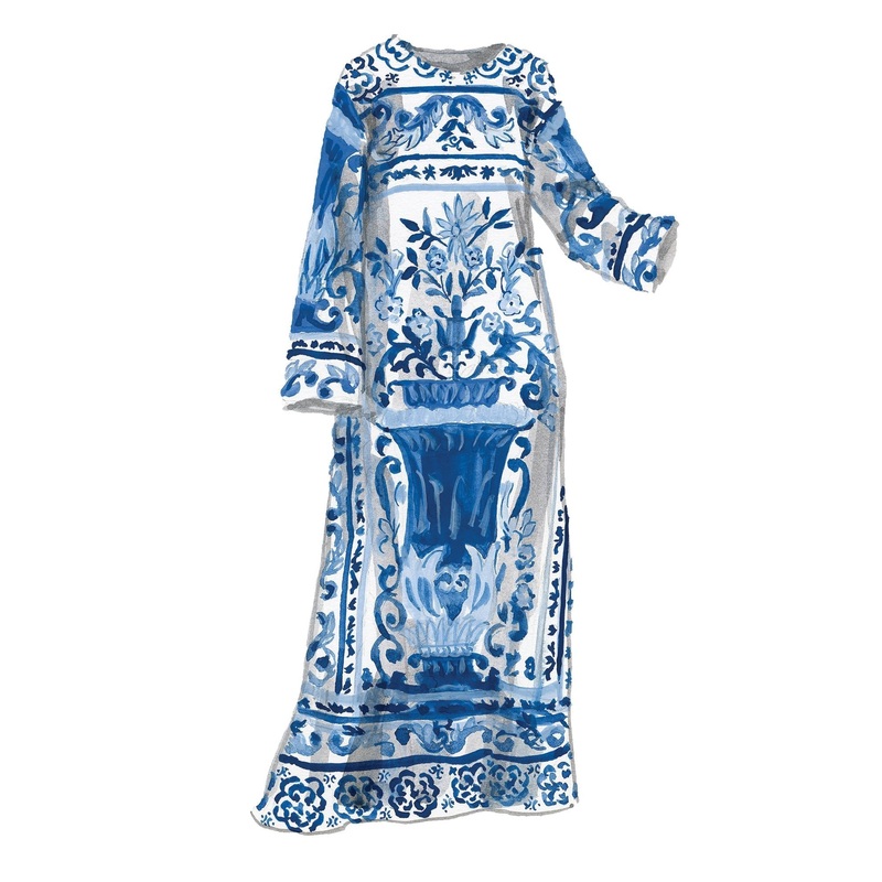 Majolica Print Caftan (No. J8133). Viscose and linen blend caftan with a