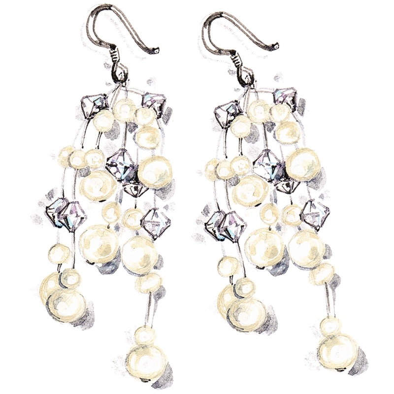 Matching Pearl Earrings(No. 1623). Pearls and crystals strung on invisible filament, look suspended in mid-air; with sterling silver hook for pierced ears.